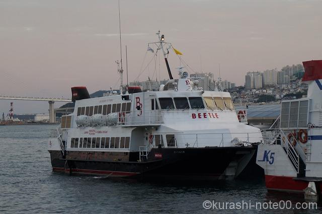 いよいよ出発。博多から釜山に行くには飛行機と高速船の航路があります。今回はビートルにて出発。福岡に住んでいながらリーズナブルに行けるビートルを使わない手はない!
