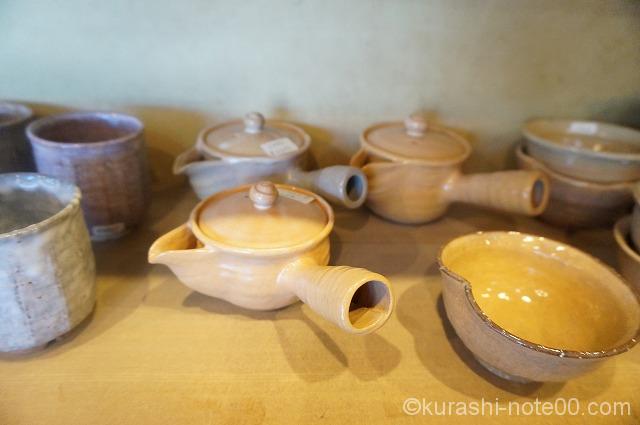 特に目を引くのが萩焼の急須。その素朴なフォルムと優しい色合いが絶妙。