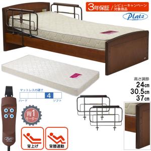 介護ベッド ケアレットフォルテ2(CareLetf2) 1+1モーターベッド3点セット フラットタイプ エルダーサポートワイドマットレス サイドレール付き(手すり・柵) 【プラッツ】 【P201-5KBA-ES】 【介護用ベッド・電動ベッド】 【送料無料】