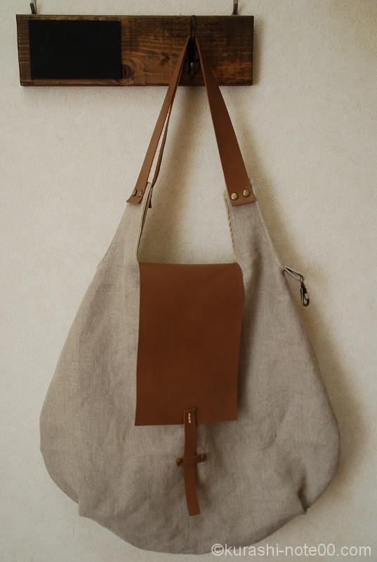 しっかりした厚手のリネン生地が手に入ったので、雑貨店で購入した革と合わせてバッグを作ることにしました。