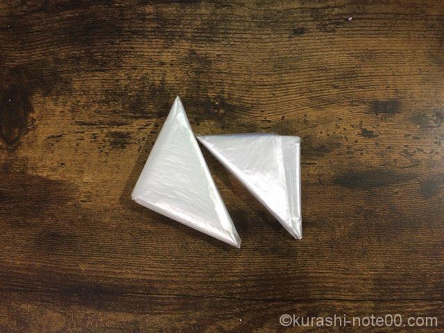 間違えてサイズの違うボックスに保管しても畳んだ後の三角の大きさでレジ袋の大きさが判断できます。
